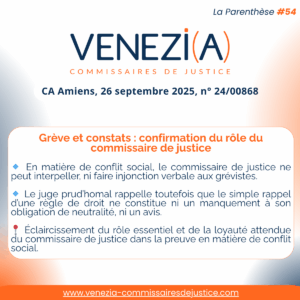 📍 Une décision qui confirme la loyauté attendue du commissaire de justice dans l’établissement des constats en contexte de grève.
